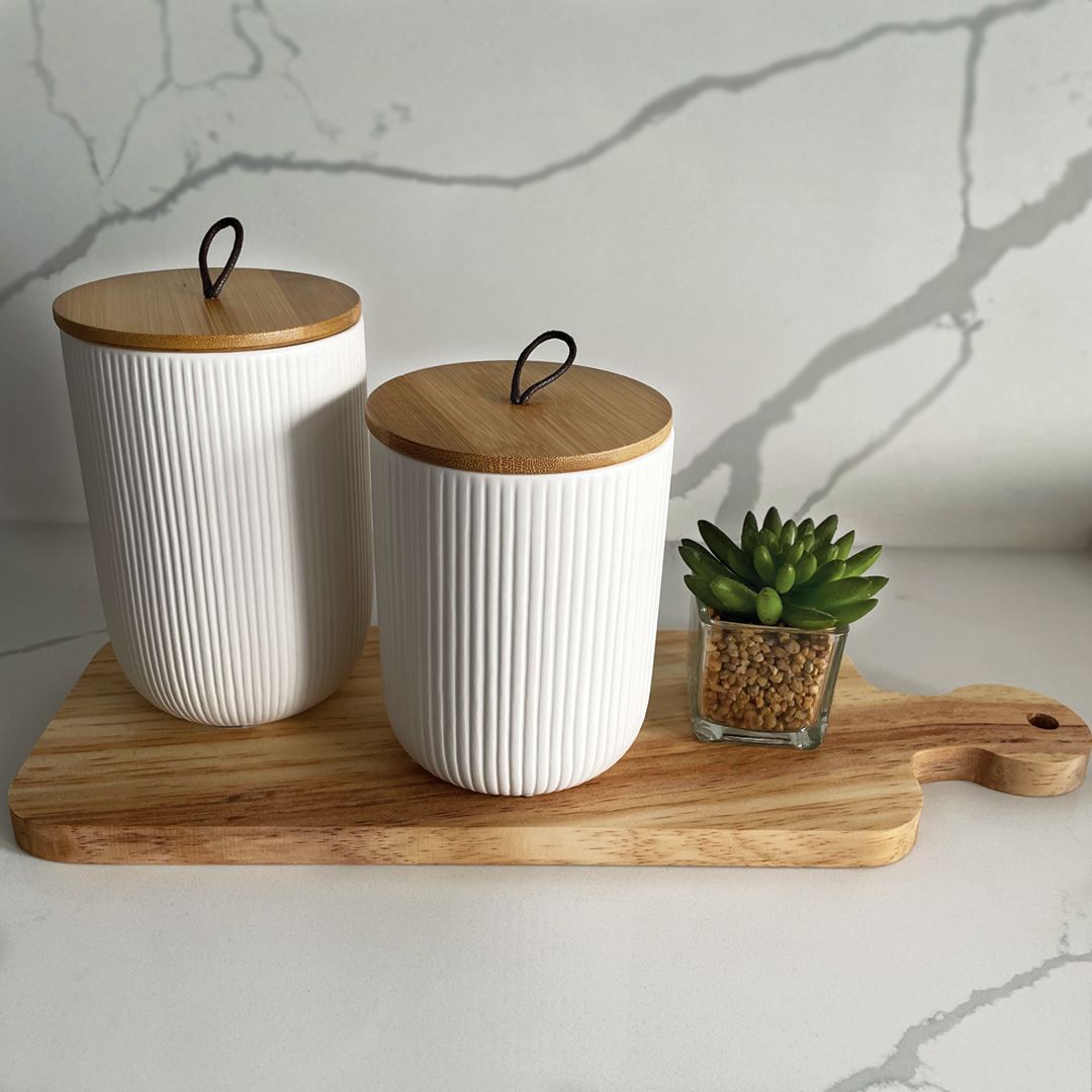 O Pote Blanc é feito em cerâmica com acabamento fosco e relevo listrado em seu exterior, deixando seu ambiente decorado e organizado.