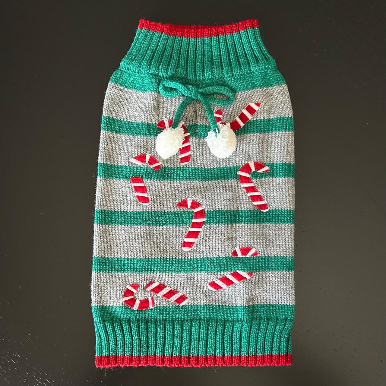 O Tricô Candy tem docinhos típicos natalinos bordados e laço de tricô com pompom aplicado.