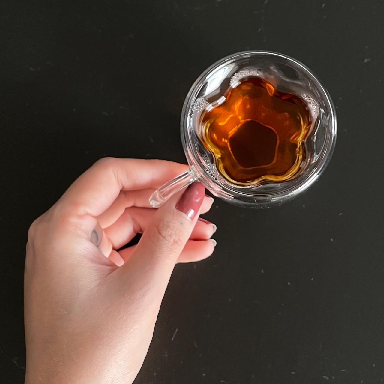 Além de ser super decorativo por conta do seu design e parede dupla, é confortável ao servir bebidas quentes, pois não transfere a temperatura da bebida para suas mãos.